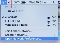 Step 6. Click on the “WiFi” icon in the top menu bar and select the network named “eduSTAR”