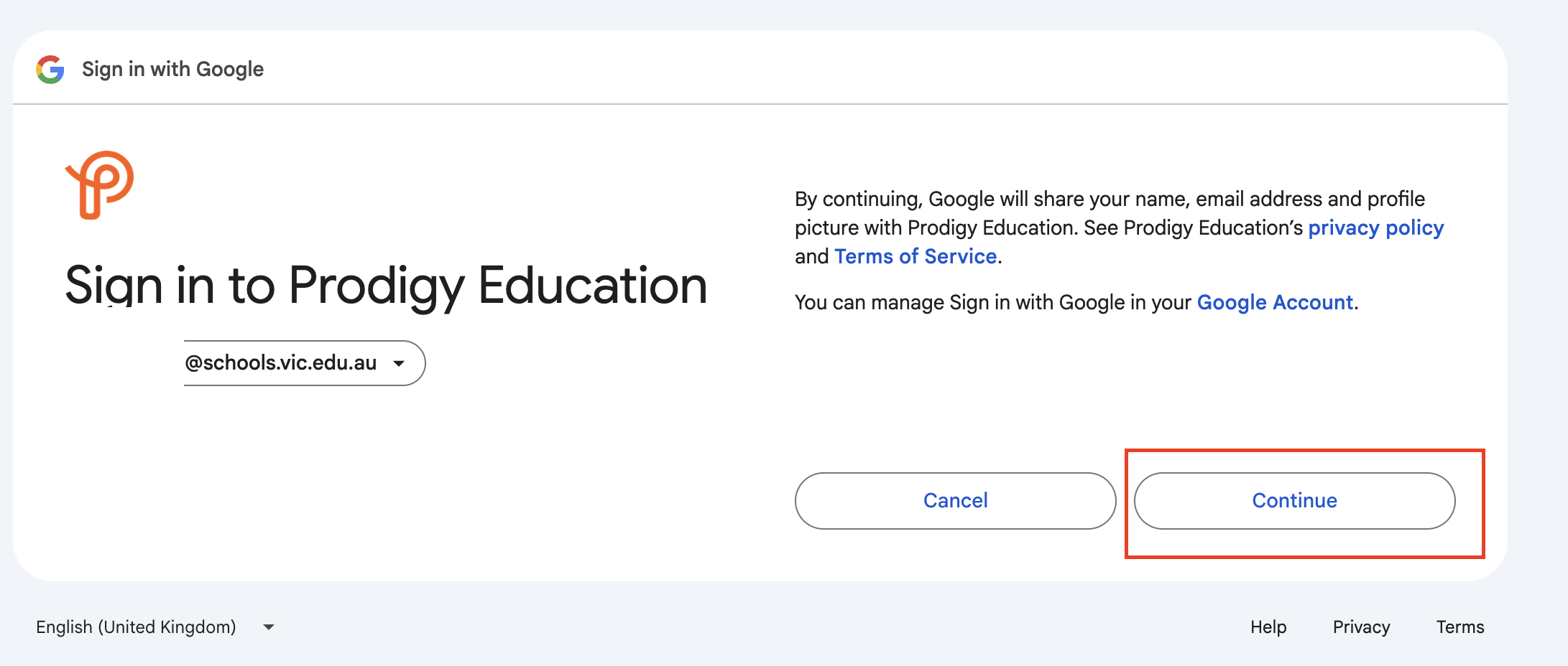If this is your first time signing into your eduPass Google account, you’ll be prompted to accept Google’s Terms and Conditions.
